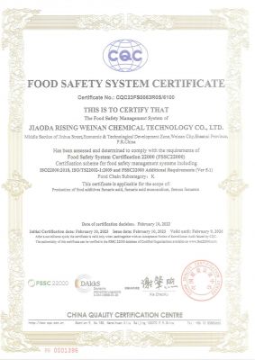 公司證書公司通過了ISO9001:2015、HACCP認證和FSSC22000等質量安全管理體系認證。